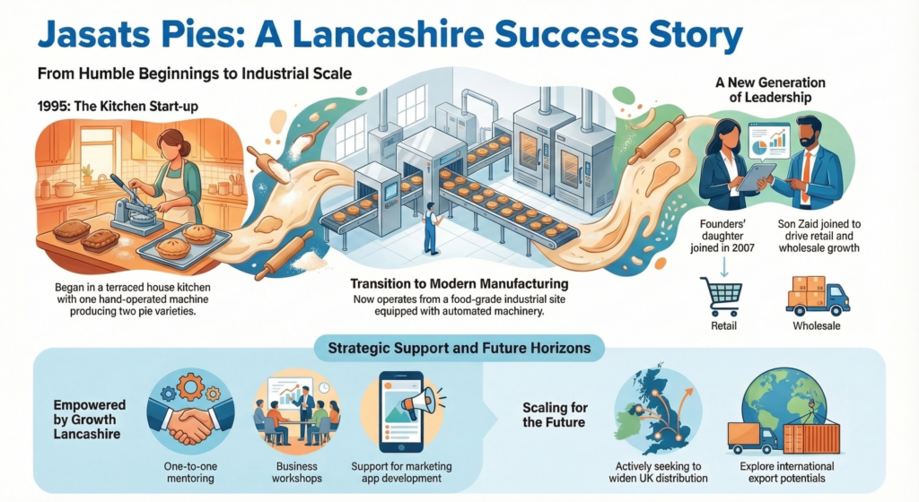 Through a long-term relationship with Growth Lancashire and advisor Purves Ali, Jasats accessed high-impact mentoring and strategic workshops. Perhaps the most significant pivot was the development of a marketing app—a sophisticated digital tool for a traditional food manufacturer. This bridge between “traditional bakes” and “modern digital engagement” allowed them to diversify their offerings, moving beyond simple pies to include pasties, samosas, and ready meals. Recognizing that external support isn’t a sign of weakness, but a catalyst for professionalization, is what separates a lifestyle business from an industrial leader.